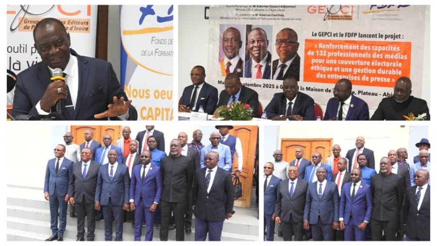 Abidjan, le mardi 16 septembre 2025(LDA)-Le Groupement des éditeurs de presse de Côte d’Ivoire (GEPCI), en partenariat avec le Fonds de développement de la formation professionnelle (FDFP), a lancé officiellement, le mardi 16 septembre à la Maison de la presse d’Abidjan-Plateau, un vaste projet de formation destiné à 132 journalistes. Placée sous le thème : « Renforcement des capacités de 132 professionnels des médias pour une couverture électorale éthique et une gestion durable des entreprises de presse », cette initiative entend doter les acteurs du secteur des compétences nécessaires pour faire face aux défis contemporains de la presse.