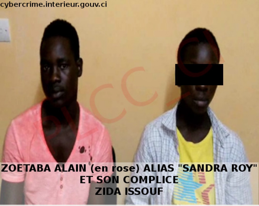 C'est à Divo, une ville située à 180 km à l'ouest d'Abidjan que les agents de la PLCC vont déposer leur valise pour poursuivre la traque aux suspects. En effet, les investigations du LCN les ont conduits vers Zoetaba Alain, âgé de 20 ans, et Zida Issouf, 19 ans. Recherchés et interpellés par les enquêteurs de la PLCC, ces individus ont été confrontés aux preuves accablantes fournies par le LCN. Zoetaba Alain a reconnu devant les enquêteurs de la PLCC se faire passer pour "Sandra Roy" avec la complicité de son ami Zida Issouf.
