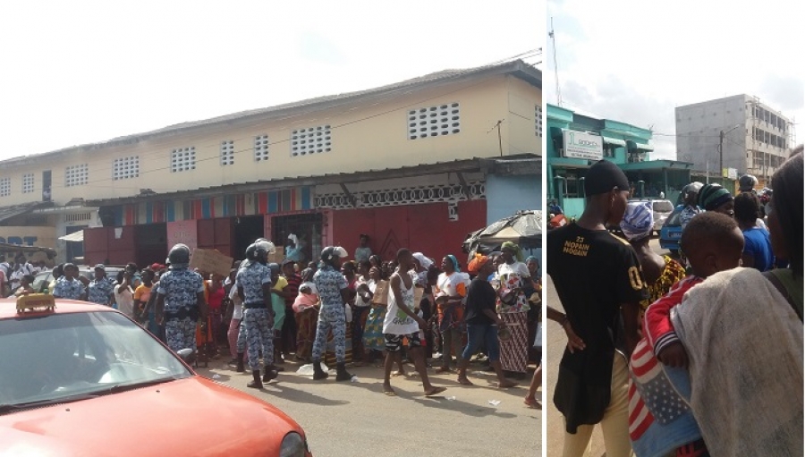 Des policiers candiraient cette manifestation pour éviter tout débordement de la part des manifestants visiblement prêts en découdre avec la direction régionale Abidjan Yopougon Wassakara.