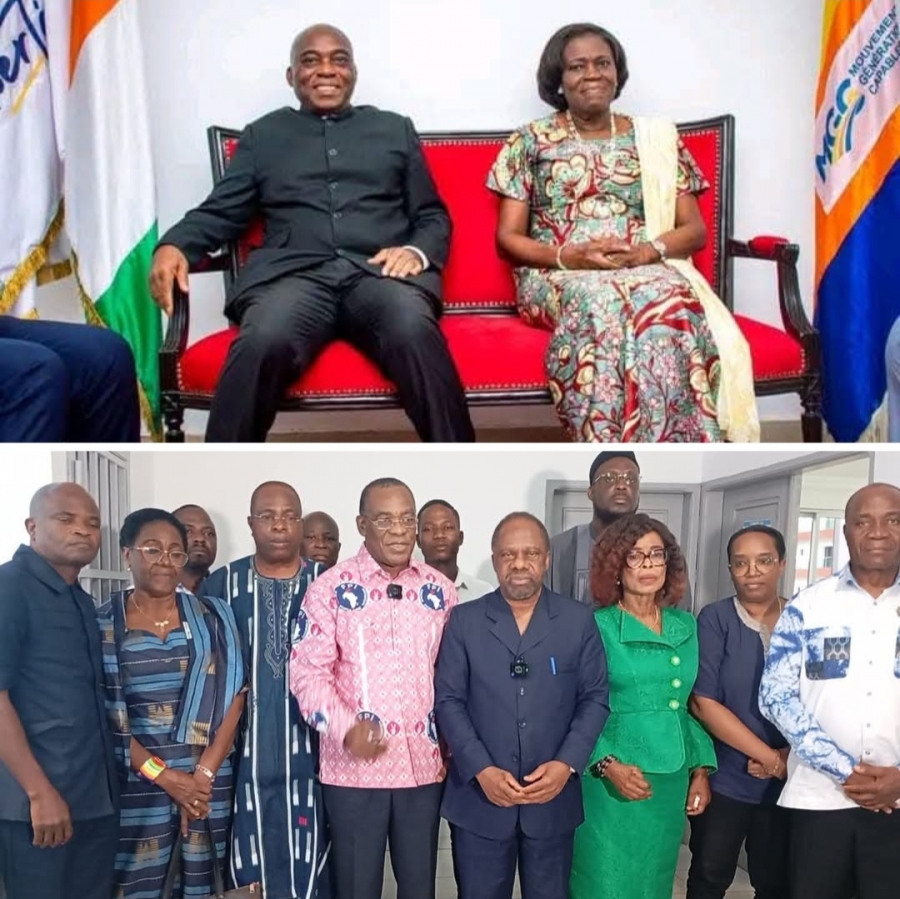 En début de journée, Ahoua Don Mello, fraîchement déclaré candidat à la présidentielle, a été reçu par Simone Ehivet Gbagbo, présidente du Mouvement des Générations Capables (MGC) et également candidate au scrutin d’octobre.