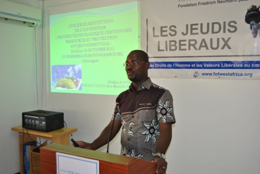 Dans le cadre de ses divers programmes de formation, la Fondation Friedrich Naumann-Côte d’Ivoire a permis à Alex Mayeul Lagaud, Enseignant et Consultant dans le domaine du développement durable, de participer à une formation sur le « progrès technologique, la gestion des ressources et la protection environnementale: une approche de marché» du 04 au 16 octobre 2015 à l’Académie Internationale pour le leadership sis à Gummersbach en Allemagne.